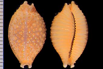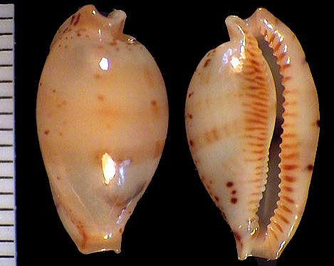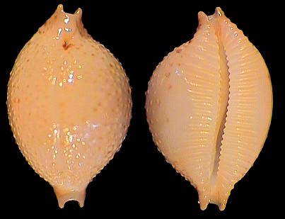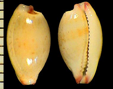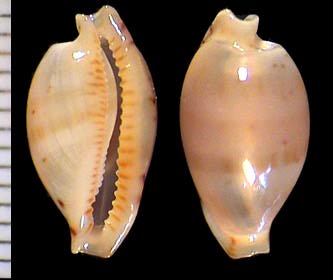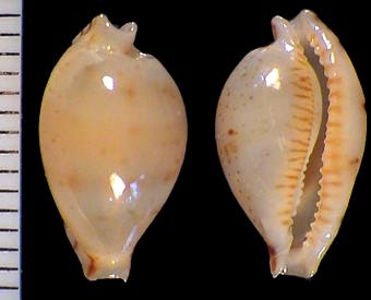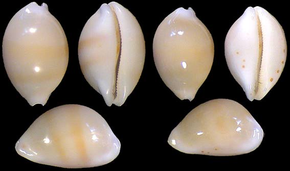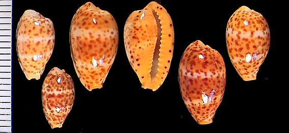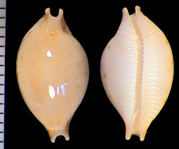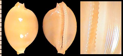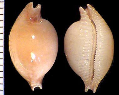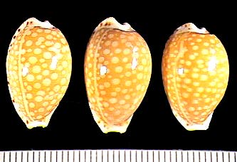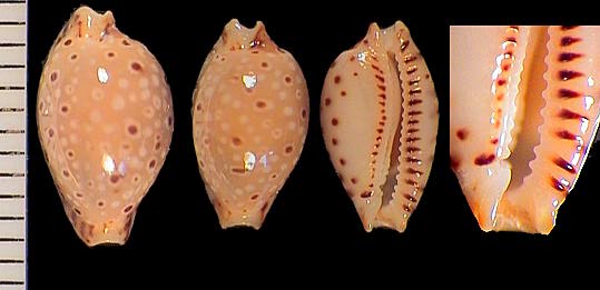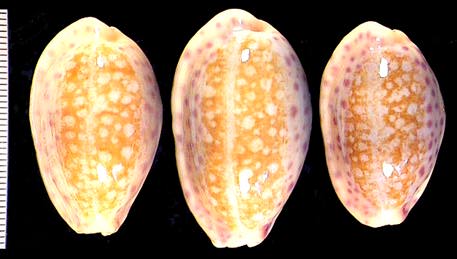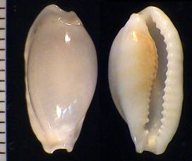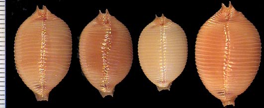 | sp. cf. cribraria | 14 | Kwajalein Atoll, very elongate, rostrate, plain white dorsum, pitted margins | 51-3 |