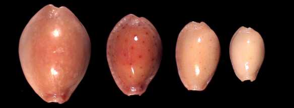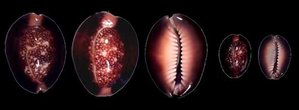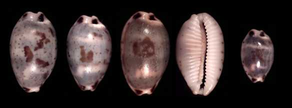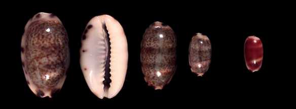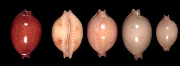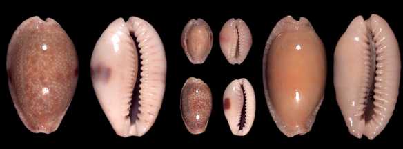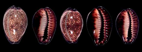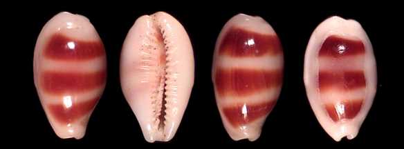![]() Next to ocellata, this is the characteristic cowry of Sri Lanka. it is found all along the south coast, in many variations of banding and callousity. There is also an attractive subfossil form. |