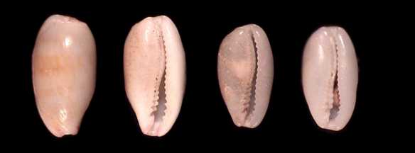 ![]() In an area near Tangalle, a spectacular variant occurs: The teeth are extending across the margins toward the dorsum, forming distinct marginal pitting. This feature is not found in any other population of moneta. The strange pitted shells are only found subfossil, but we have a few in excellent condition. They are more spectacular than the photos actually reveal. The pitting is an important systematic feature of the genus Naria. In all moneta formerly known, this feature was missing. The fact that a population of moneta with distinct marginal pitting once existed in Sri Lanka confirms the relationship of the moneta-group with typical Erosaria. |