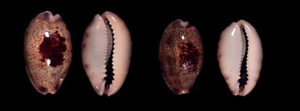 ![]() Not common as a livecollected shell. We got a few samples from the Tangalla area. These are rather sparsely spotted, the terminal blotches are separated. In one specimen, the blotches are fused (on the right) thus resembling the subspecies reentsi. |