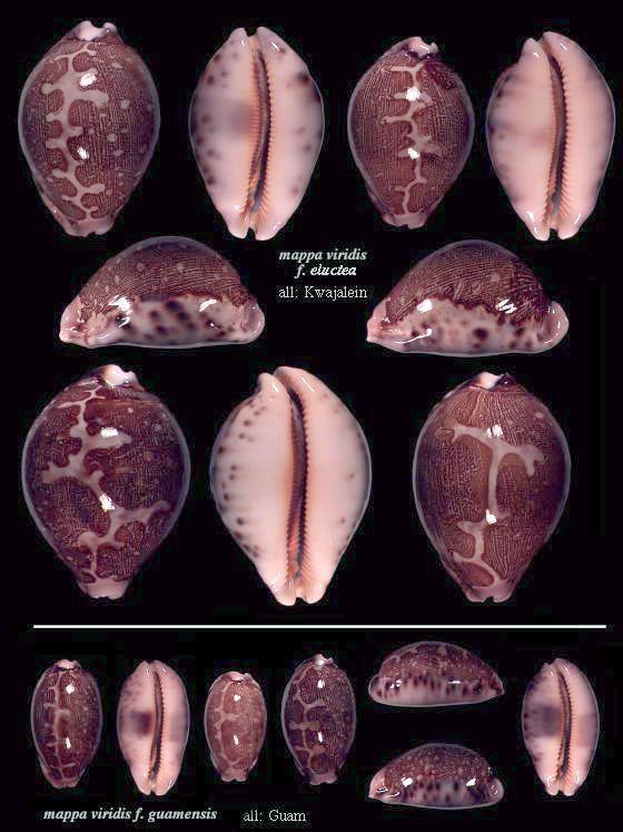 2 a. Leporicypraea mappa viridis (formae: eluceta, guamensis*, montrouzieri)