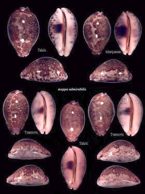 Leporicypraea mappa admirabilis from different Polynesian localities