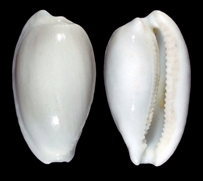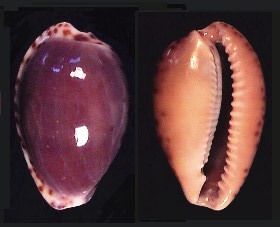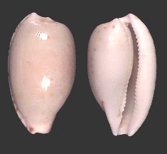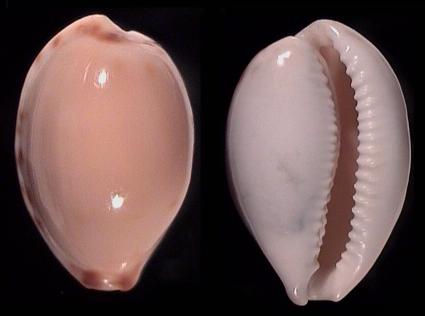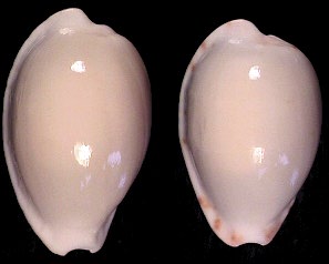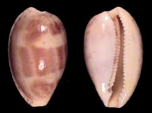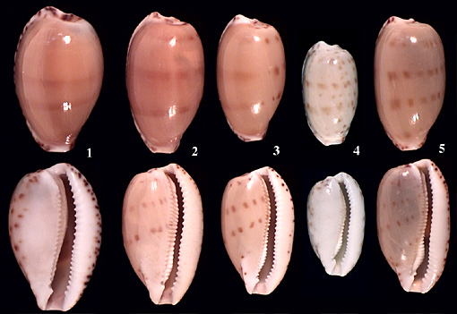 Little is known about the Notocypraea from deep water as they are small and easily drop through the mesh of fishing nets. Sometimes, they can be found in the stomach of fish. The plate below shows a form of comptonii which I called "ereginae" in G3. It is found in the stomach of the Queen Morwong (Nemadactylus valenciennesi) caught at 60 to 100 m off Esperance, SW Australia. These shells (fig 2-3) differ consistently from shallow water comptonii (fig.1: from the Esperance Jetty at 6 m)) by the slender shell with two very fine transverse bands and reduced terminal blotches, a narrower aperture, finer teeth and an enormous fossula and coarsely denticulate columellar peristome. These features are more typical for pulicaria (fig. 4: from Albany Harbour at 4 m), which is also found in the stomach of those fish, alongside the "ereginae" form of comptonii. The pulicaria from these depths are larger, more inflated and have a coarser, more projecting fossula than their shallow water relatives. Schilder (when describing hartsmithi in 1967) had already noted that a strong fossula is an archaic feature in the Cypraeidae. Recently, studies of the holotype of subcarnea revealed that this name has been misinterpreted. It is a valid species restricted to Tasmania.