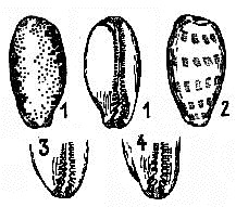 All examined specimens of P. oryzaeformis sp. nov. show a well defined dorsal banding consisting of five narrow interrupted bands. This feature is observed also in occasional eroded or subadult P. serrulifera. Paratype 1 seems to be an eroded specimen (Fig. 2). Another shell showing the dorsal banding is a subadult deposited in coll. Hubert, Erlangen (pers. comm. 1997).