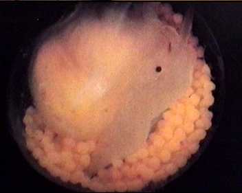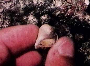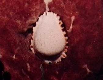 An egg-capsule of Cypraeovula algoensis. Only one specimen has developed to the pediveliger stage.