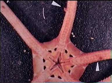 There are many groups of ectoparasitic snails on starfish and Sea-urchins. Most of these belong to the Opisthobranchia, such as Ophioderma, a small snail that lives on the oral area and the arms of ophiurids, with their proboscis eaten into the tissue of the host.