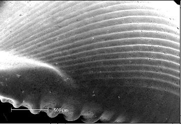 Fig. 7: Pustularia margarita, subadult. SEM-Photograph (500x)