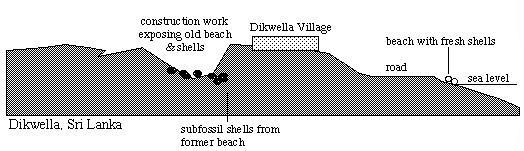 Another fantastic site for subfossils was discovered during railway construction in the extreme south of Sri Lanka, near a village called Dikwella. It is supected from the quality and the characteristics of the shells found here that a former strip of beach got covered by a greyish mud and was subsequently conserved. Movements of the coastline have transferred the former beach and perhaps the adjacent litoral zone to dry land over the years. On digging in this area some ten years ago exposed the old beach with all the treasured subfossil shells showing up.