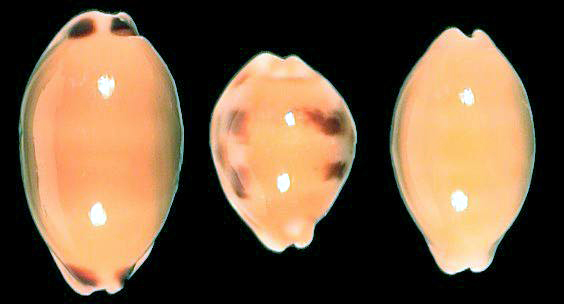 Left: Monetaria caputserpentis (Sri Lanka), middle: N. helvola argella, freaks (Bagamoyo), right: N. helvola argella (Bagamoyo)